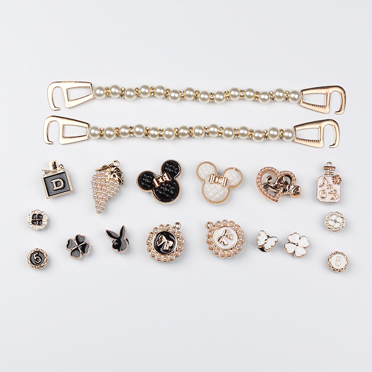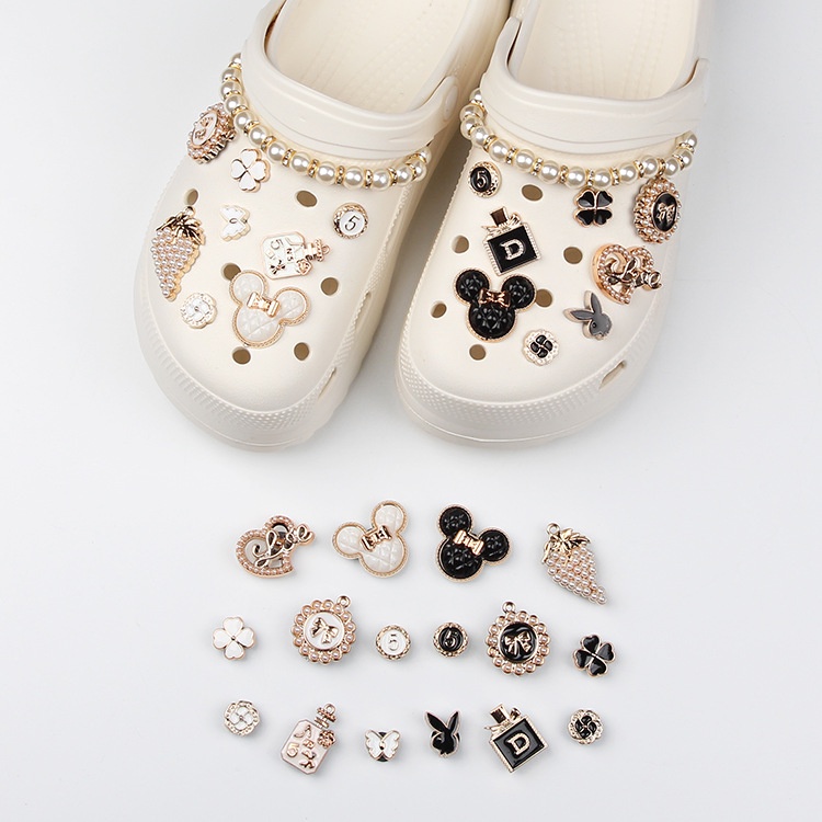 18pcs Double Chain Perfume Mickey Crocs DIY Charm Shoe Accessories#Black and White Series