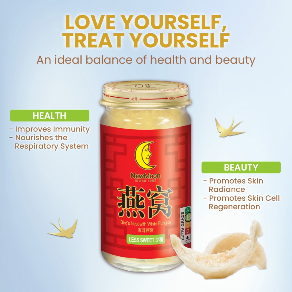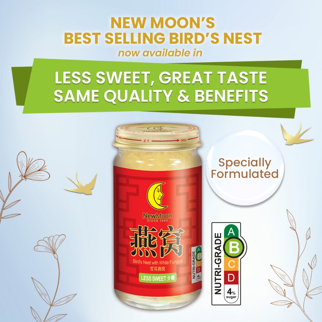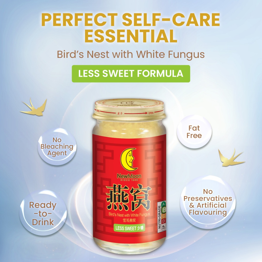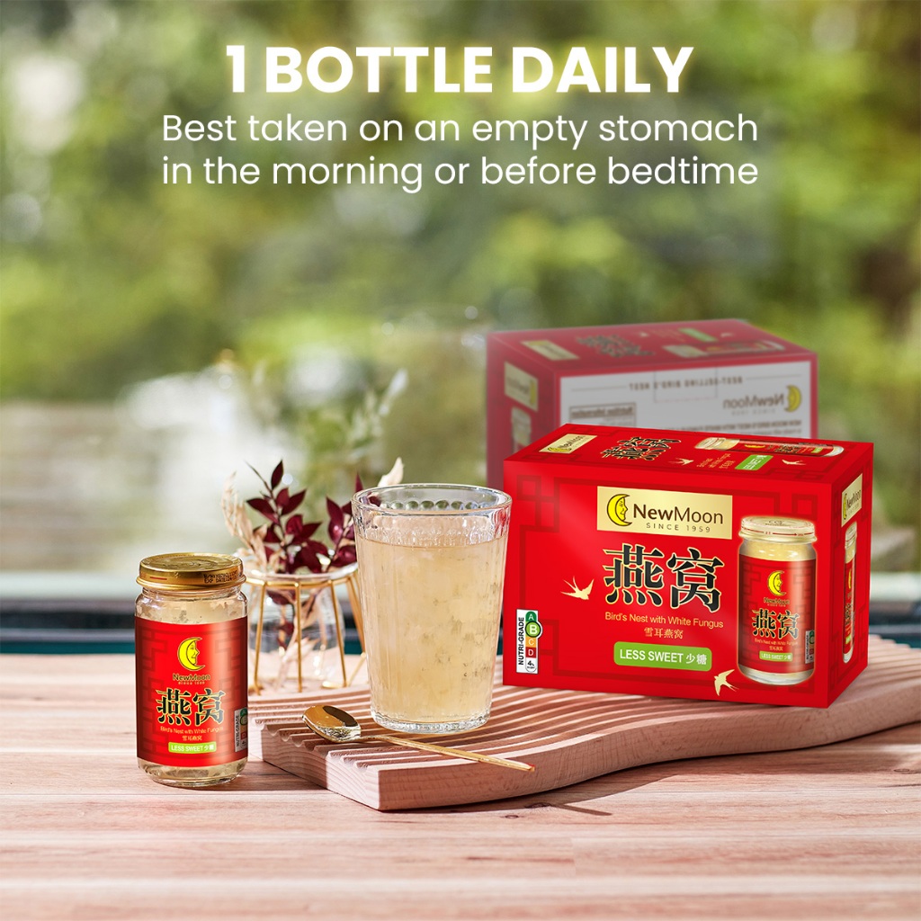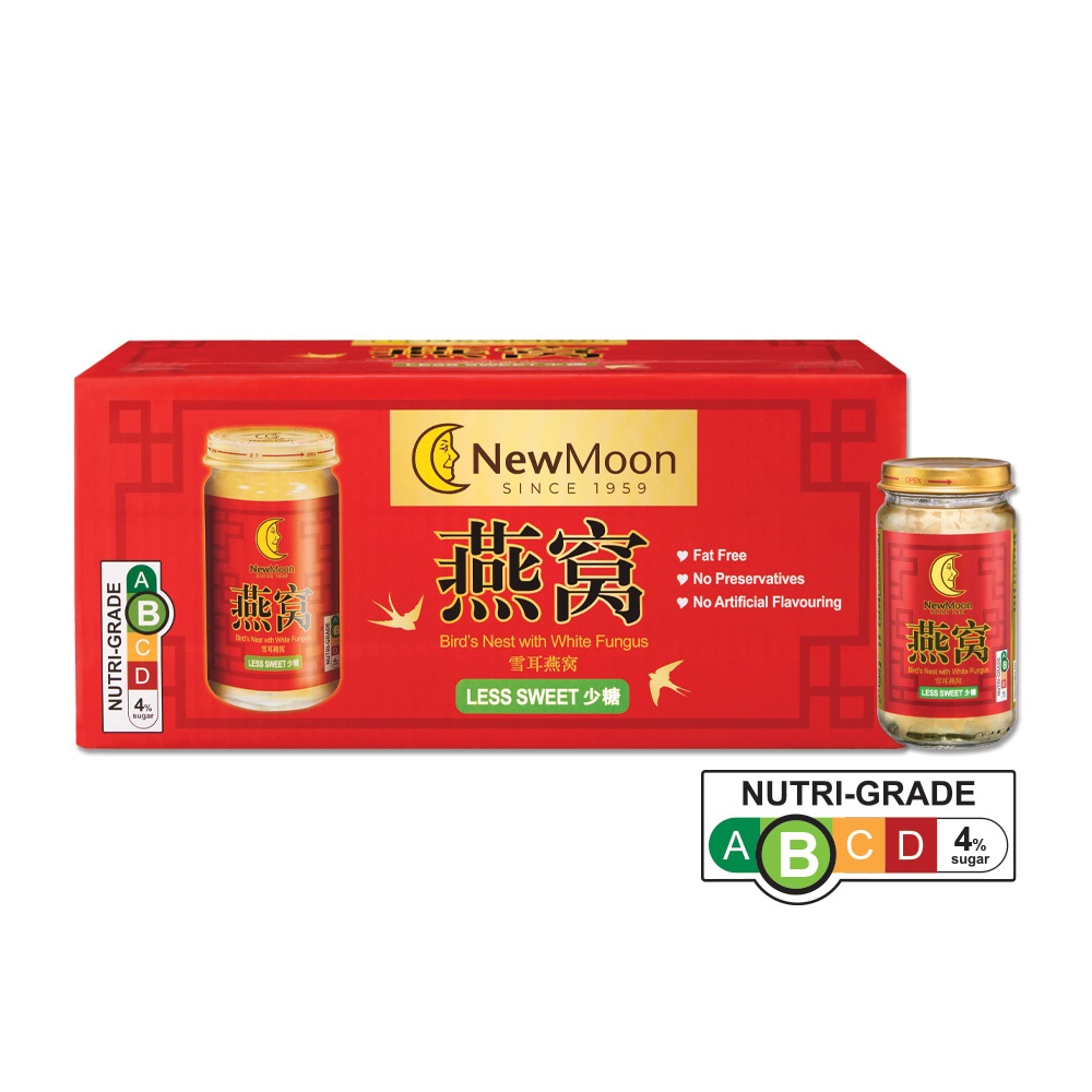 [2 Cartons Deal - Less Sweet] New Moon Bird's Nest with White Fungus Rock Sugar 150g x 15 bottles