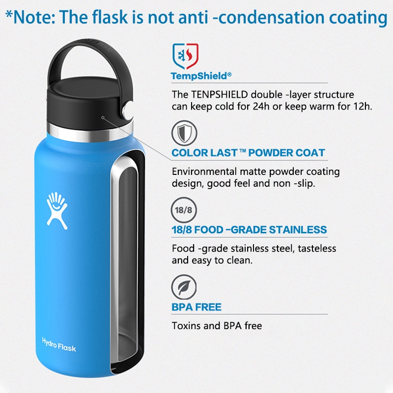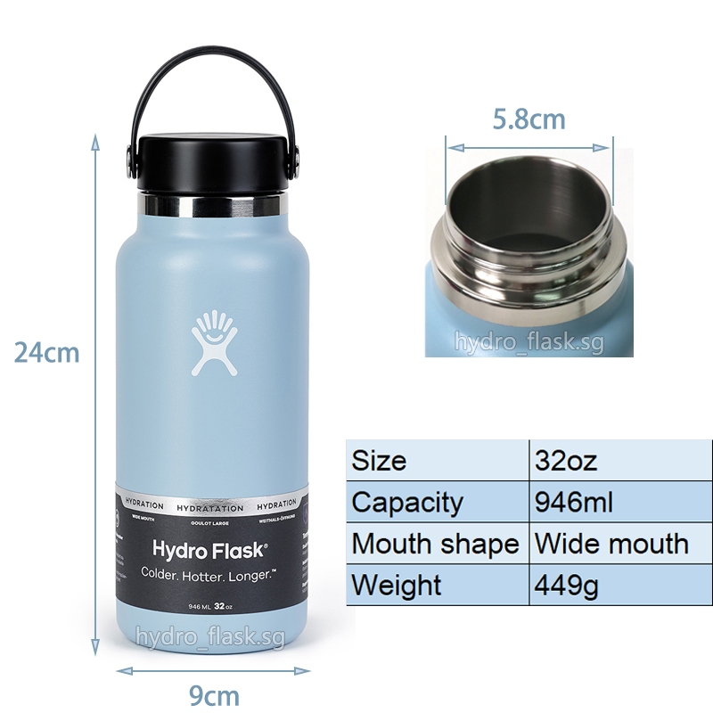 32oz Hydroflask Water Bottlee Thermos Flask - Black Fog Blue Hydro Flask Lid