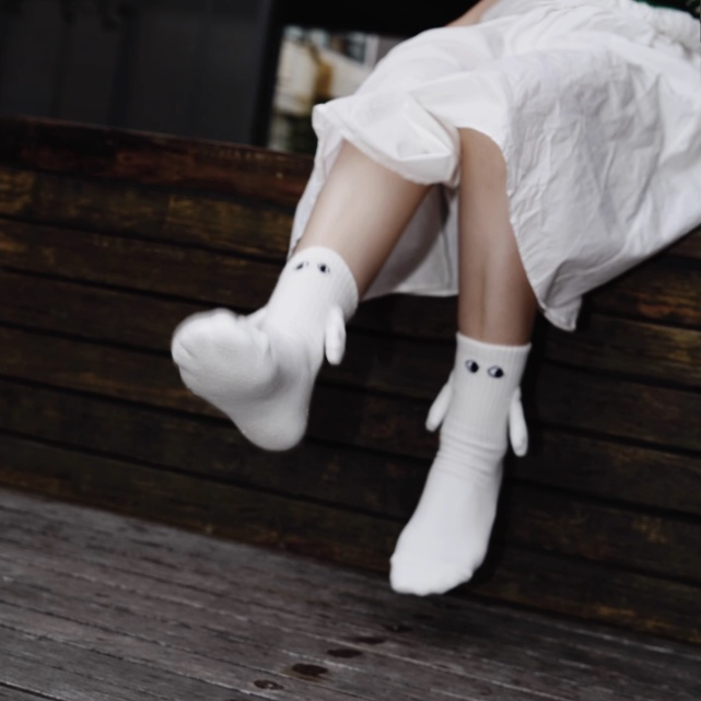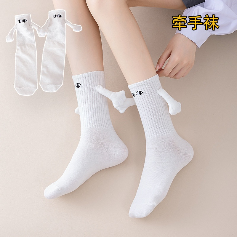 【Agilemind】 couples holding hands socks magnet personality stereoscopic doll cute white cotton hold hands stockin