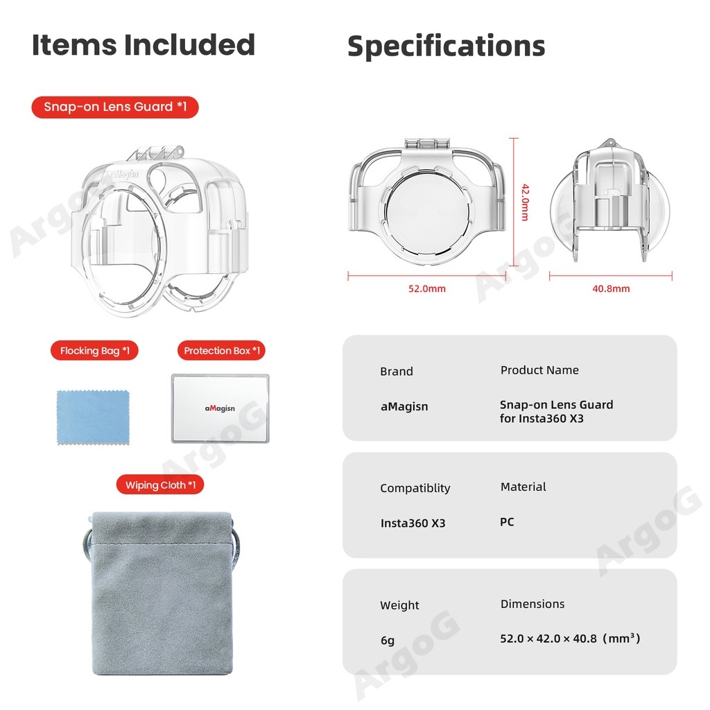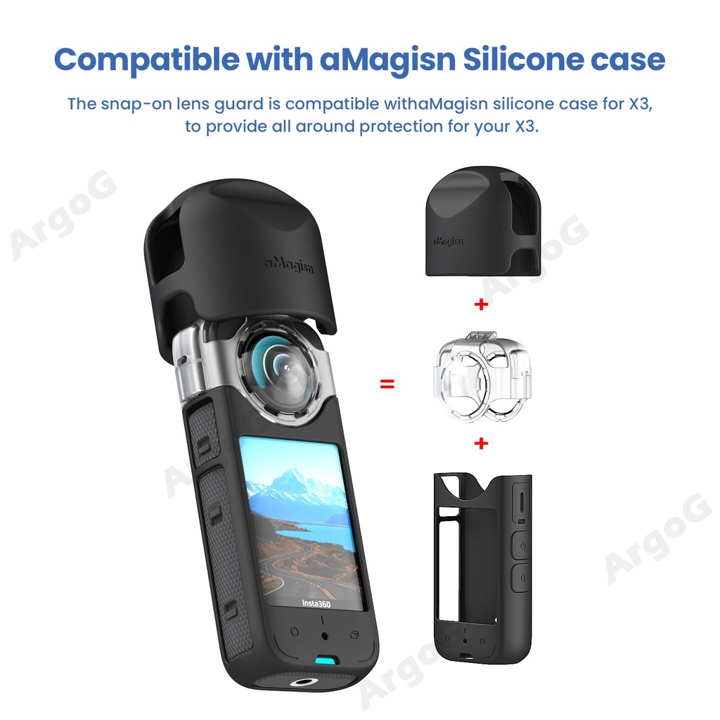 aMagisn Anti-Fog Lens Guards For Insta360 X3 with Silicone Case and Lens Cap Protective Cover Case Insta360 X3 Accessories Kit