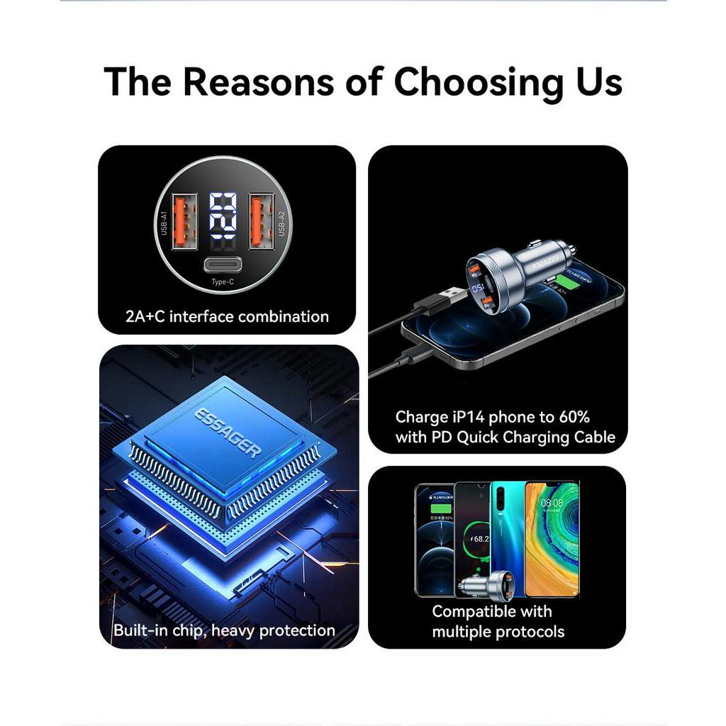 Essager 80W Car Charger USB Type C PD Fast Charging Phone Quick Charge for iP 14 13 Samsung