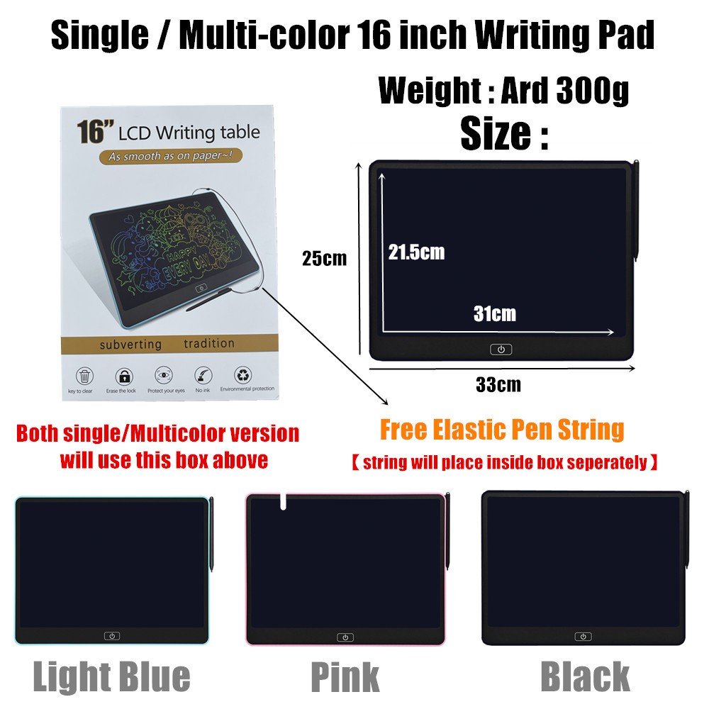 Free Extra Battery & Pen String-Ultra Thin 8.5 / 10 /12 /16 Inch Drawing Tablet / LCD Writing Tablet / Kid Writing Pad
