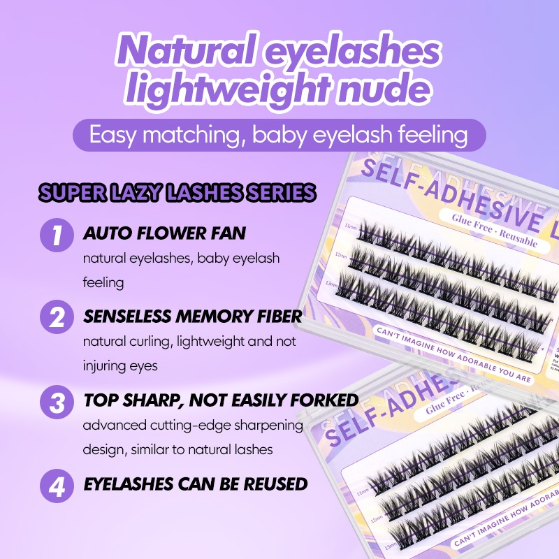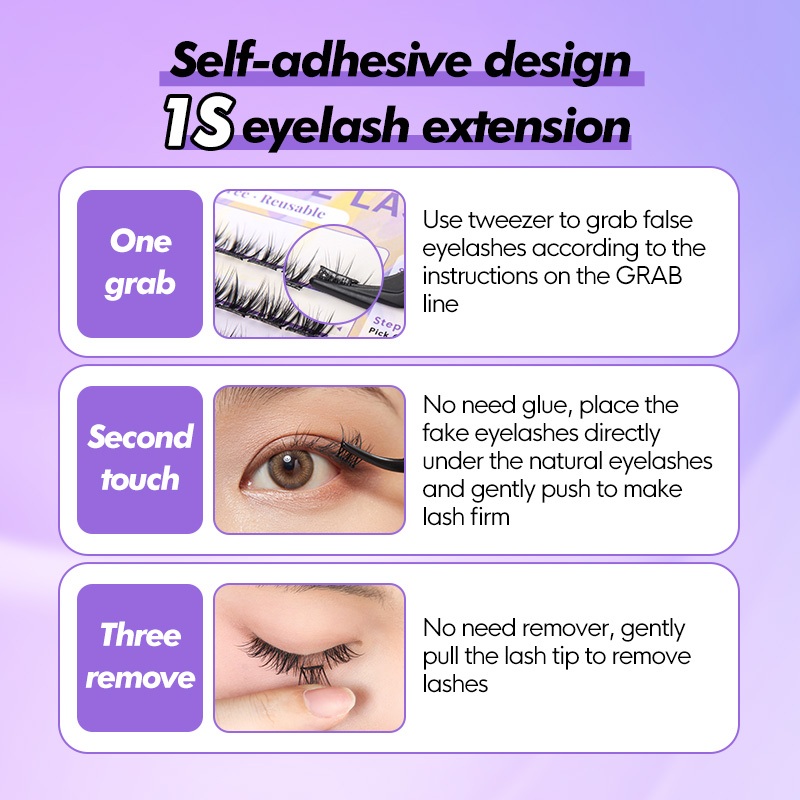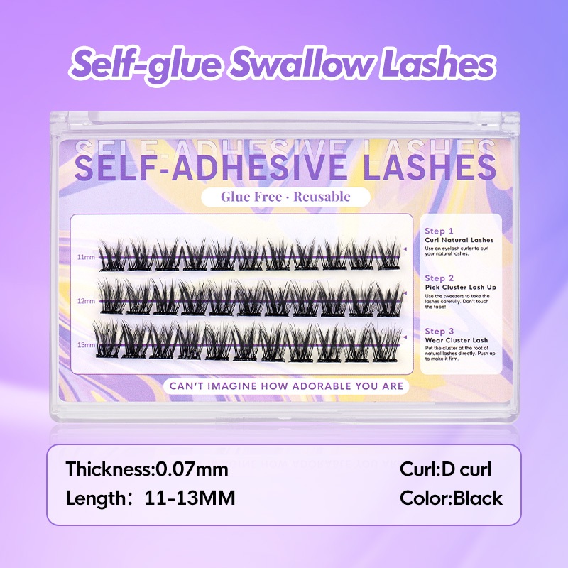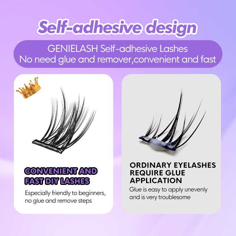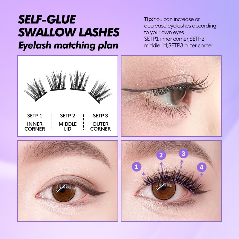 【Free tweezer】GENIELASH Glue-free Swallow Eyelash for Beginner Self Adhesive Eyelashes Natural False Eyelashes No Need Glue