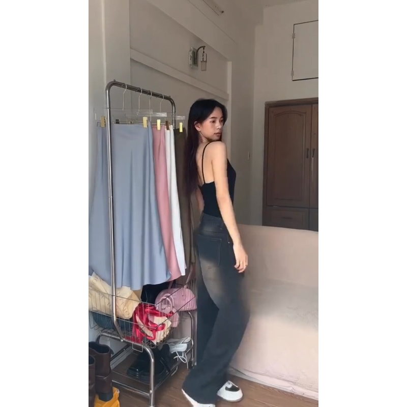 Material Quality:Normal like jeans Colour:Black Very good jeans, the size is perfect, the color is exactly like the picture which barely happens especially from shopee but this was very good. It's the perfect baggy size at the legs and at the waist it's perfect fit