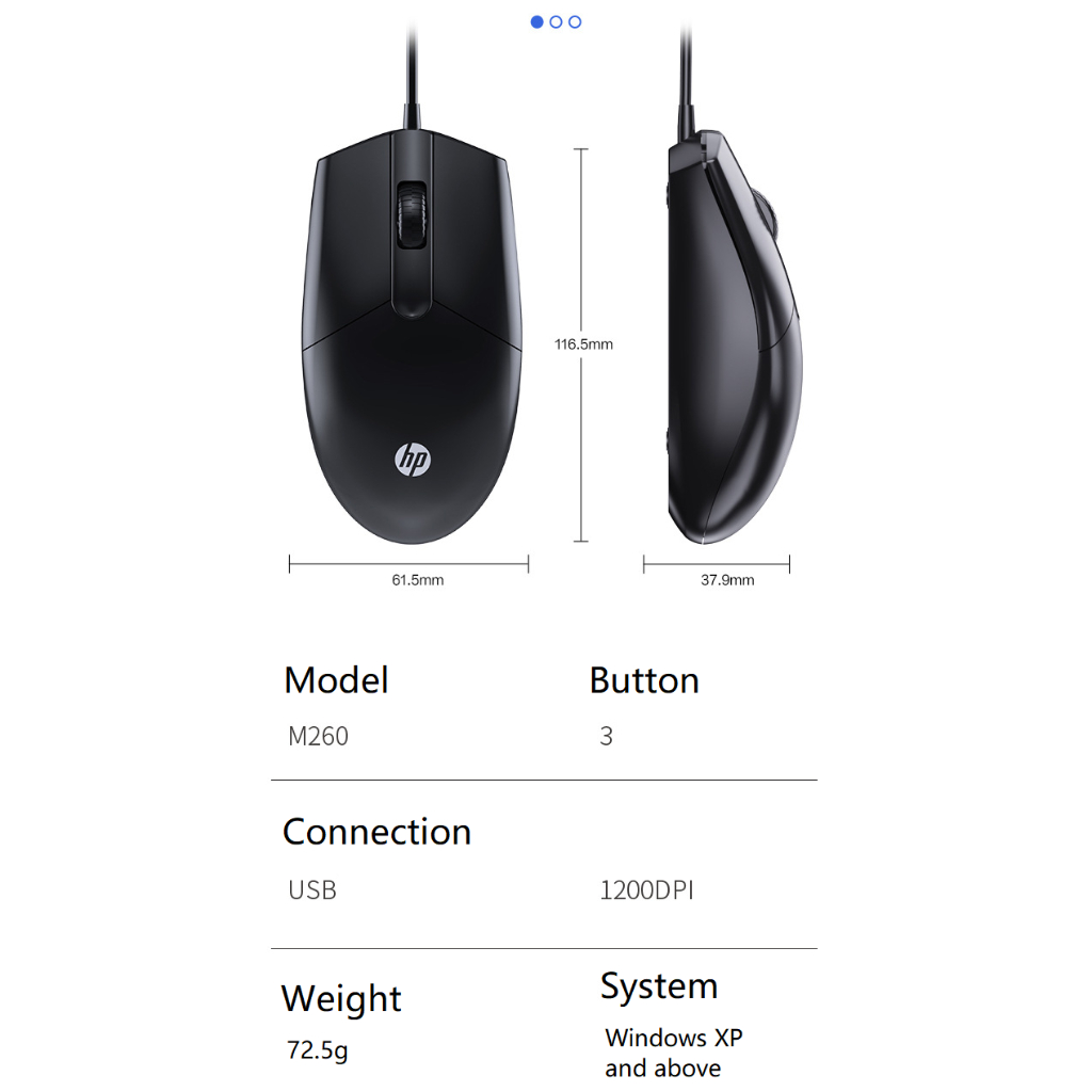 HP | Vention M260 High Performance Wired USB Mouse Optical Sensor 1200 DPI With Fine Surface & Rubber Scroller