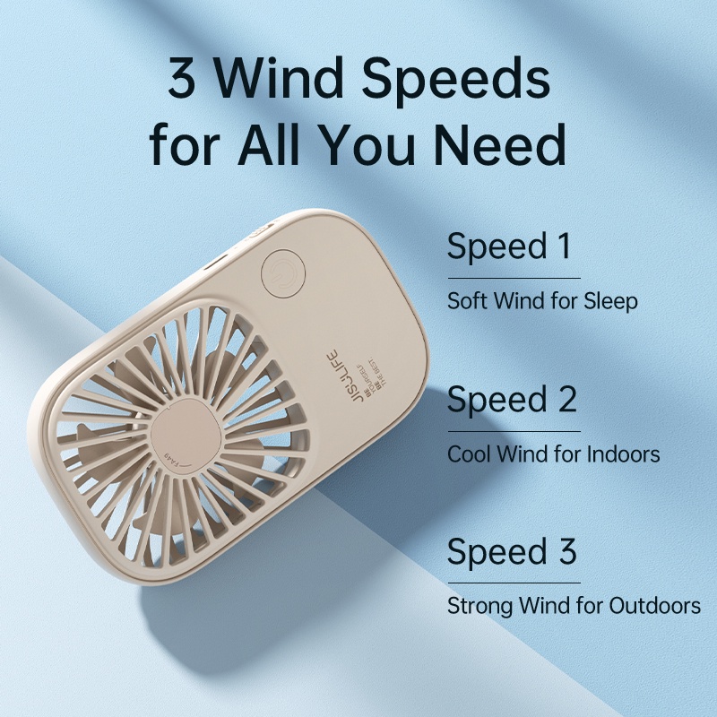 JISULIFE Pocket Mini Fan Portable Handheld Slim Safety Lock 3 Speeds Strong Wind Free Landyard