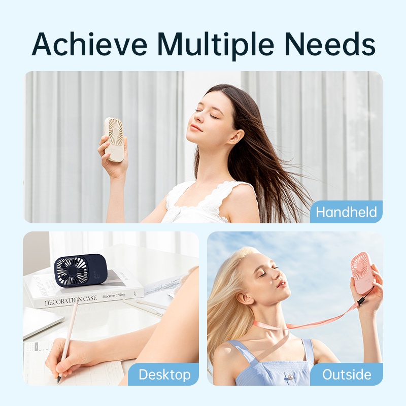 Best Feature:It has strap and standable sa desk Product Quality:High quality I needed a handheld fan for commute and this one is very perfect since it has a strap too and has a slim body, it doesn’t take up too much space on my bag. The wind is just enough, and the battery life is long.