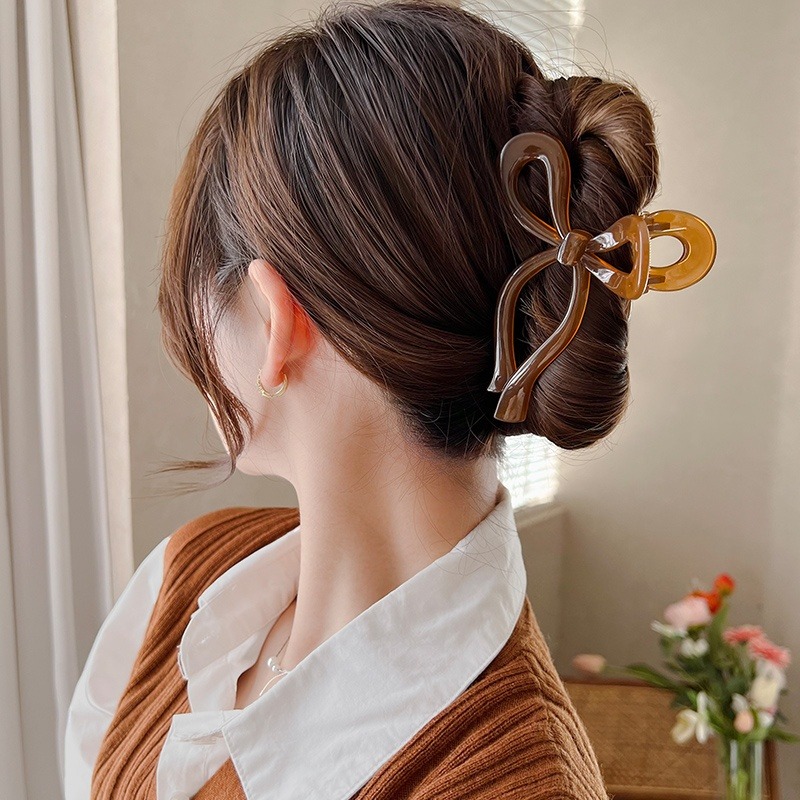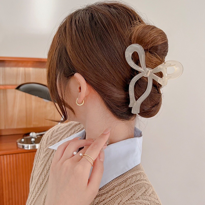 Korean Style Ins Bow Hair Clip Plastic Hair Claw Fashion Simple Shark Clip Ladies Hair Accessories