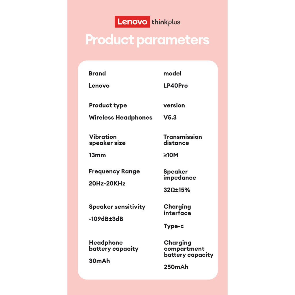 Lenovo LP40 Pro Bluetooth Earphone Lenovo LP40s TWS with Mic Mini Wireless Earbuds Bluetooth 5.3 Sports Headsetlenovo earbuds