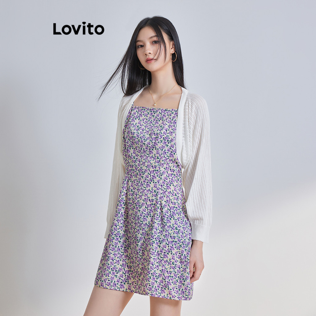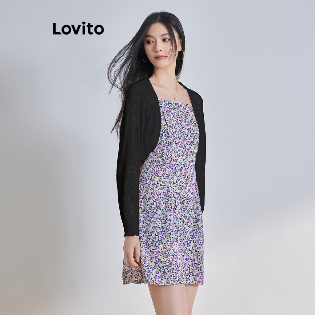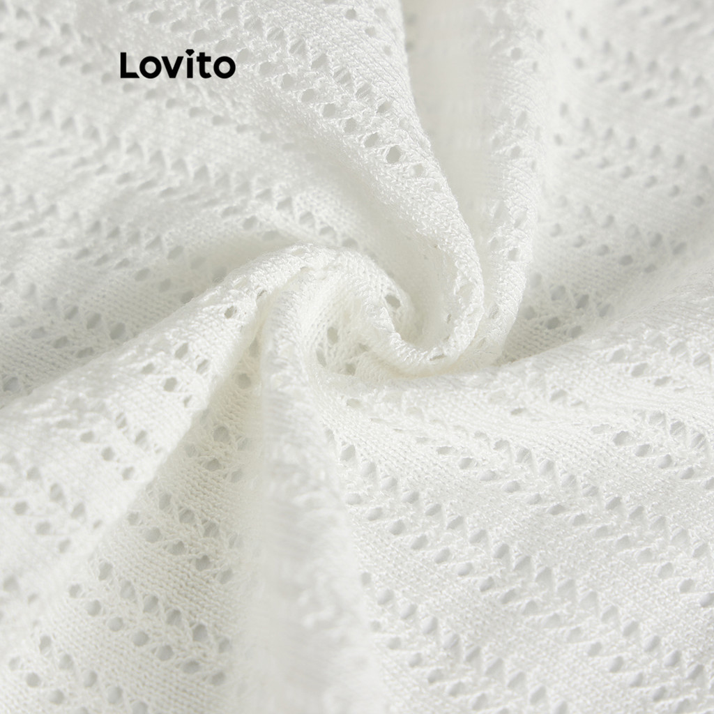 Lovito Casual Plain Cardigans for Women L64AD102 (White/Black)