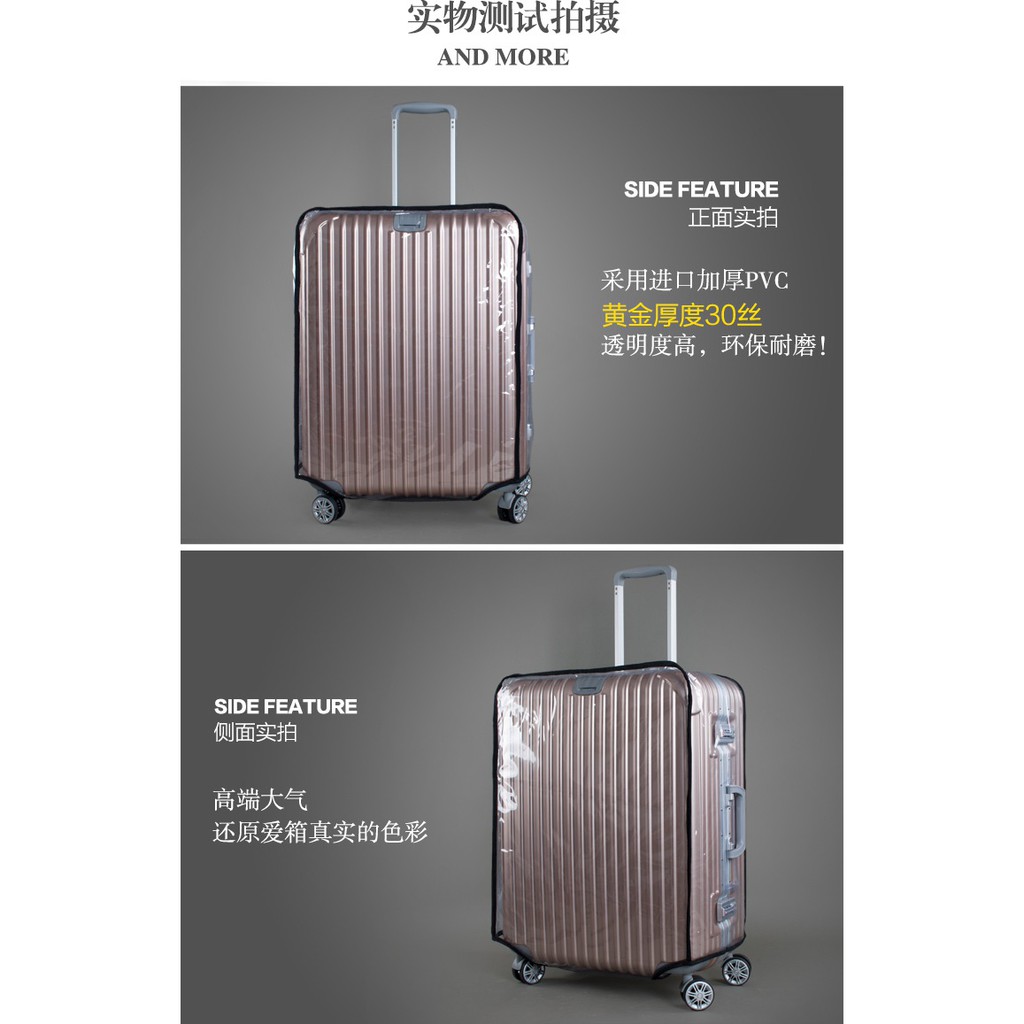 Suitable Occasion:For protection of luggage from wear and tear during travel, and from dust during normal days Suggested Look:Transparent and can see luggage design clearly Capacity:Size accurate to description Ordered on 25 Mar, received on 27 Mar. Very fast delivery! Size is as per the item description. And is secured with velcro at the bottom. My luggage is slightly slimmer than the cover, so will prob have to add more velcro on my own to secure it more. There is an opening on the right and at the top for the handles, and it fits well for my luggage. Will have to test the durability in my next travel!