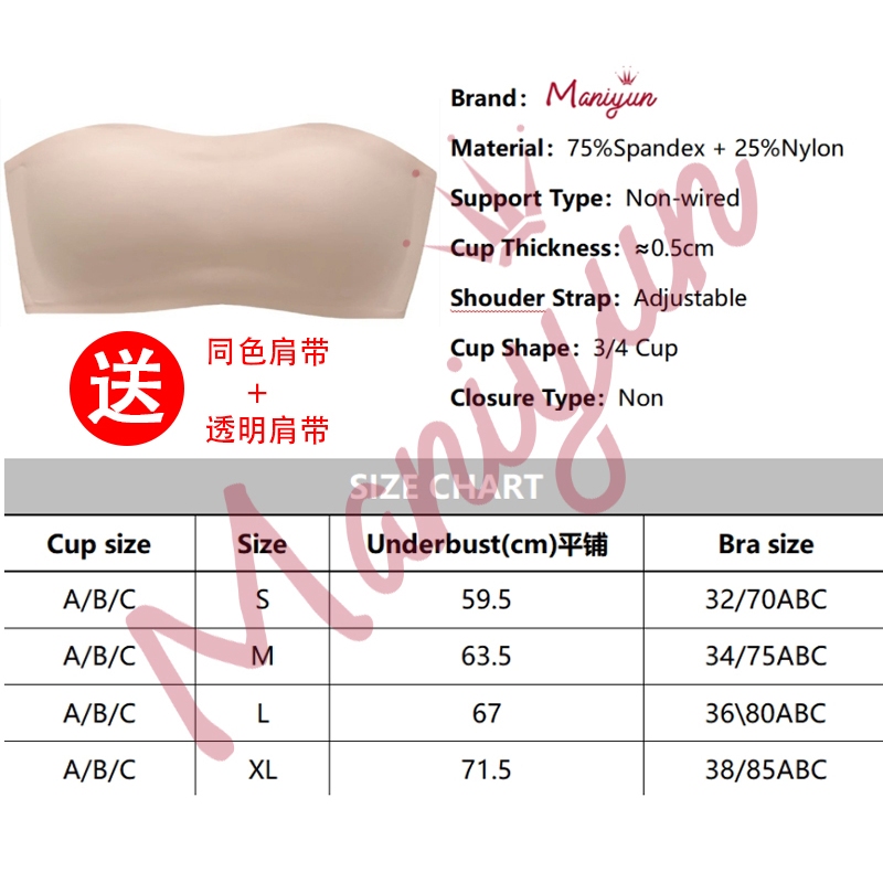 Maniyun One-piece Strapless Bra Women Seamless Anti Slip Multiway Bra Small Chest Push Up Invisible Bra Lingerie
