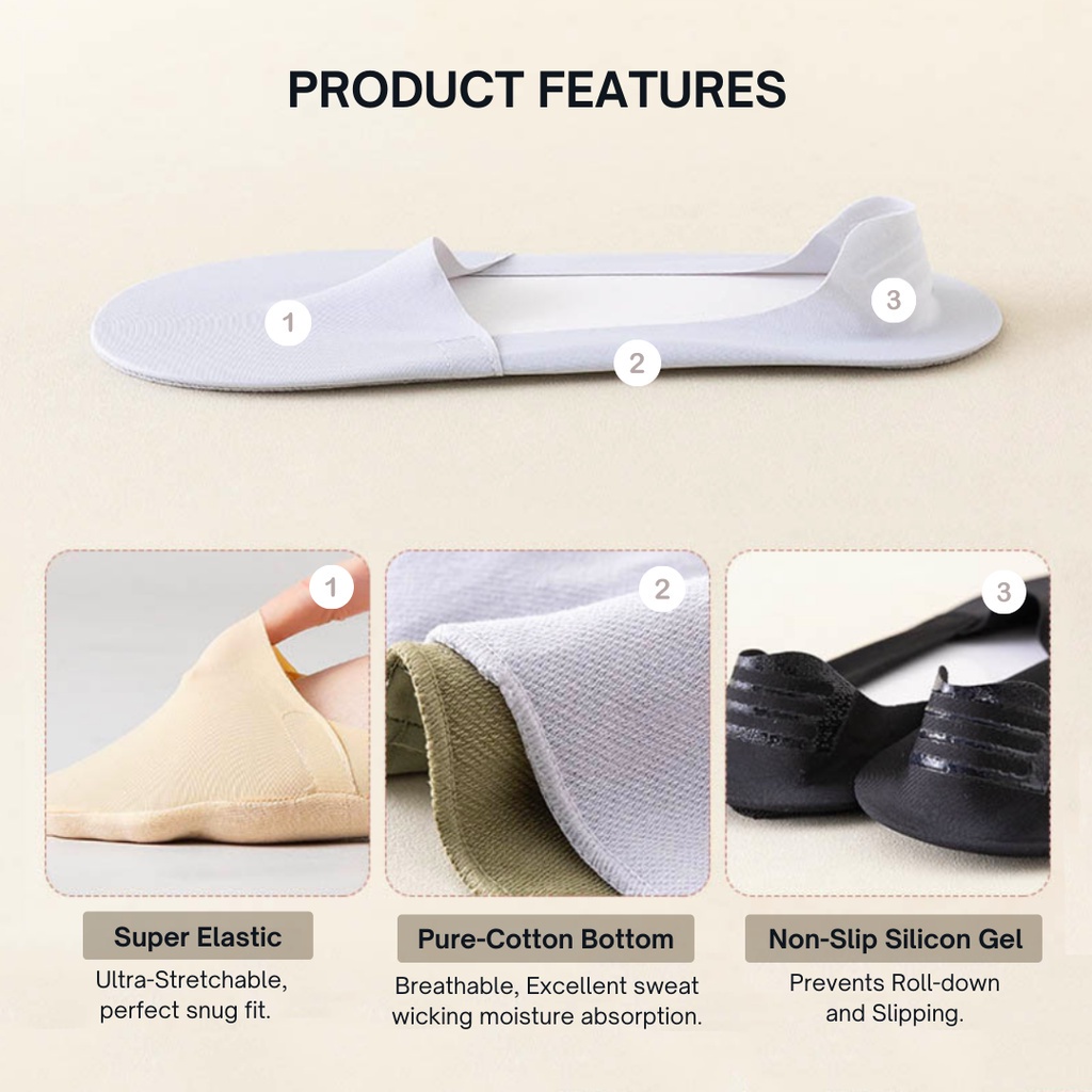 Quality:soft smooth material for top, and cotton and anti-slip for bottom of the sock. Wearing Comfort:super comft. it grips perfectly at ur tendo calcaneus. Value for Money:By far, this is the best hidden socks.