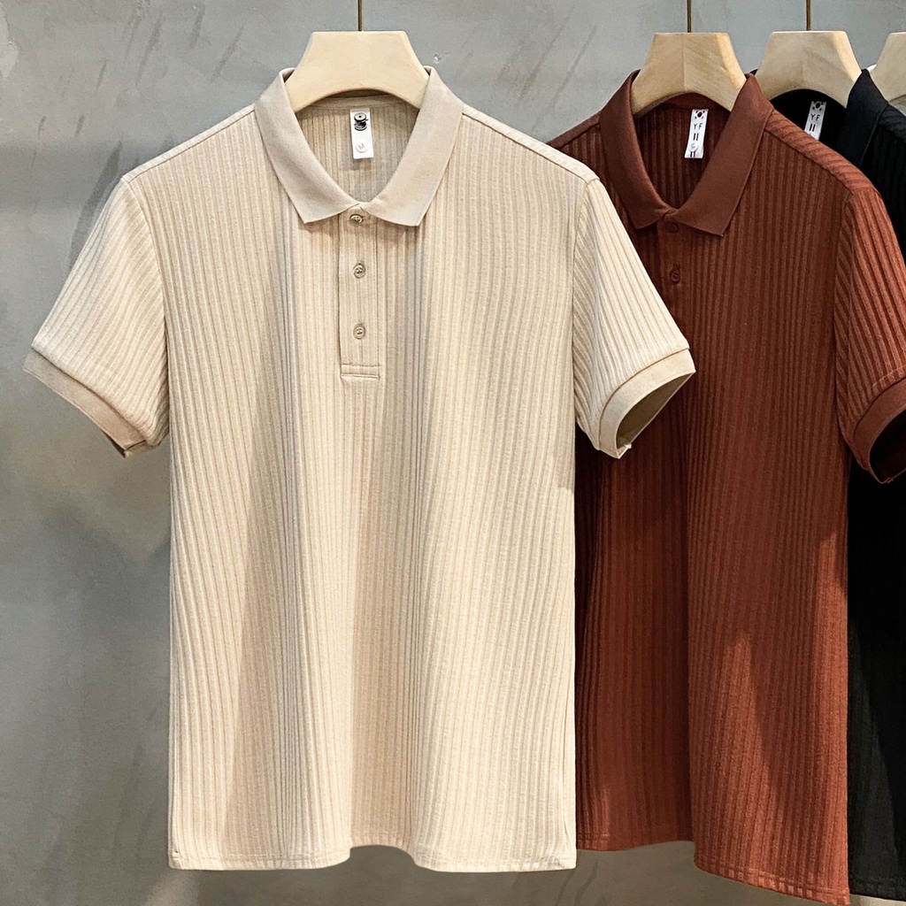 Pit Stripes Mercerized Knitted polo Shirt Half-Sleeved Street Wear Summer Top Trendy Lapel Men
