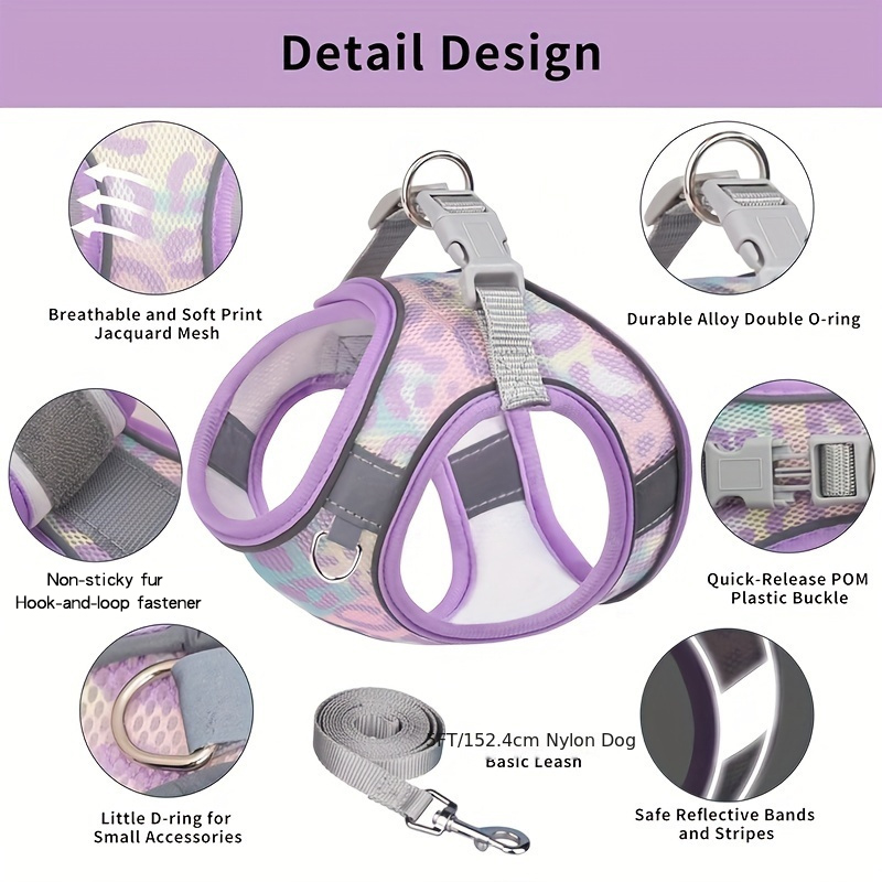 Quality:good Suitability:just right for my dog Appearance:nice purple Col Items received in good condition. Nice Col to match my existing leash but the harness is too small for my dog