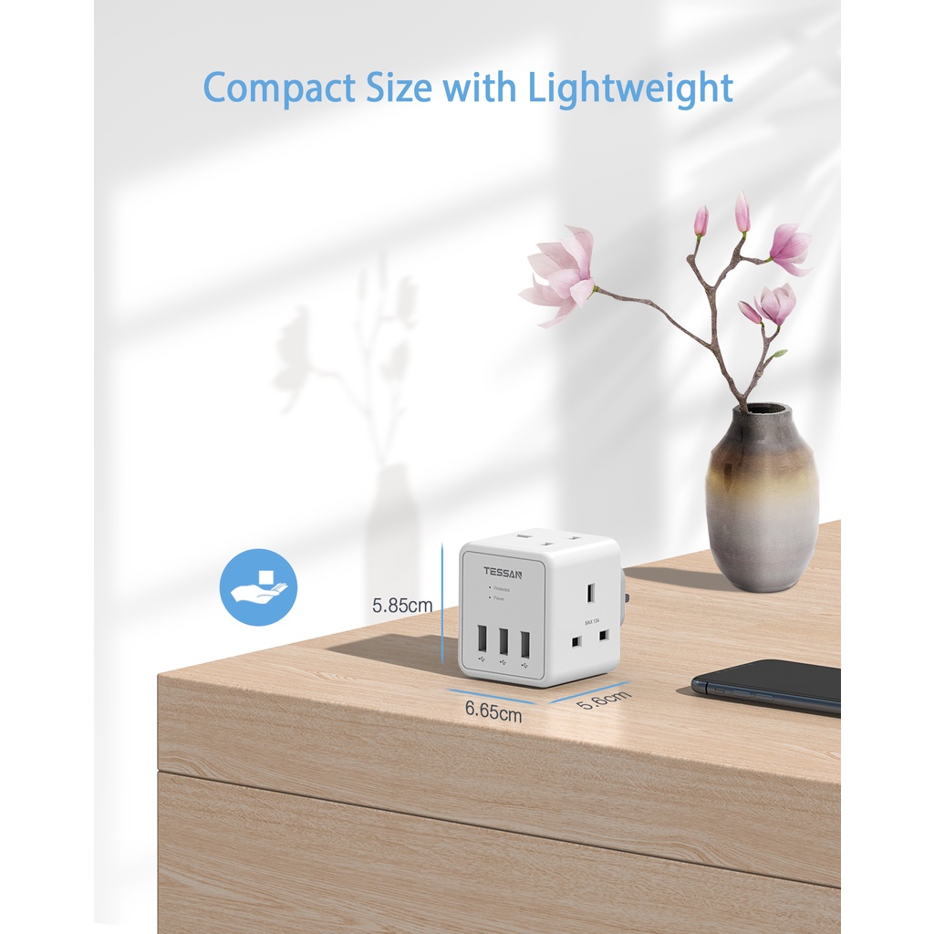 TESSAN Multi Plug Extension Adapter with USB+Type C,Surge Protector Wall Socket Charger Safety Mark