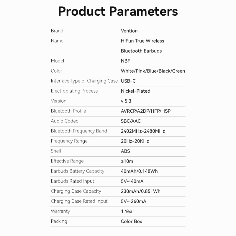 Vention Earbuds Bluetooth Earphones TWS V5.3 Headphones Waterproof Wireless Gaming Headset Black Compatible with iP 11 1