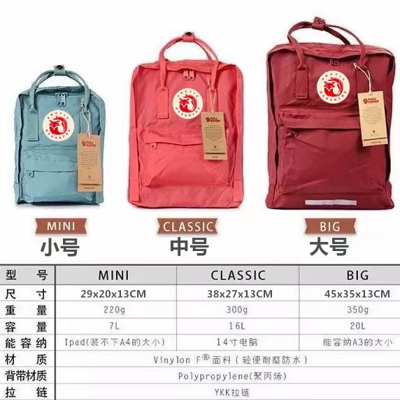 Capacity:can fit a 14 inch laptop Value for Money:good Suitable Occasion:school I recently purchased the Fjällräven Kånken backpack online and love it! The design is stylish and practical, making it perfect for daily use. It’s made from durable materials and fits all my essentials comfortably. The variety of colors adds a fun touch. Overall, it’s a reliable investment I highly recommend!