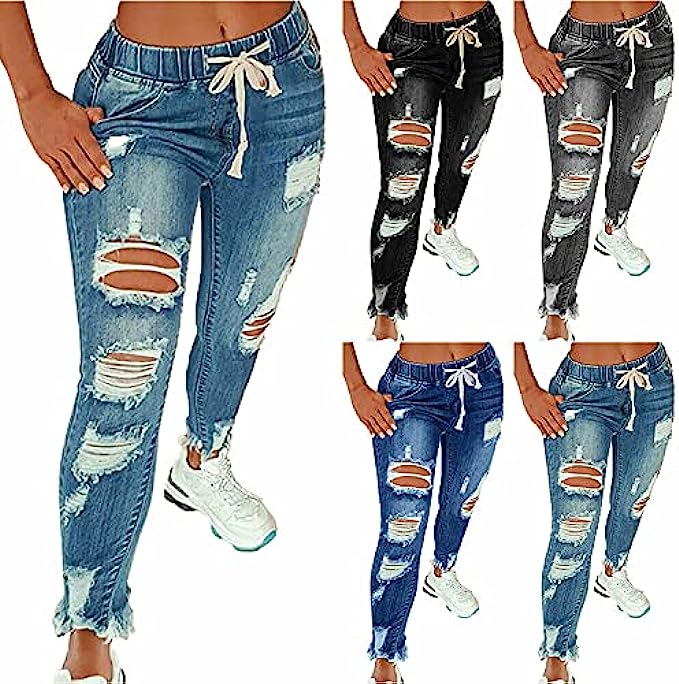 • Features: high waisted,denim destroyed,skinny leg,zipper closure,long pants,button down classic denim,ripped detail,slim fit.