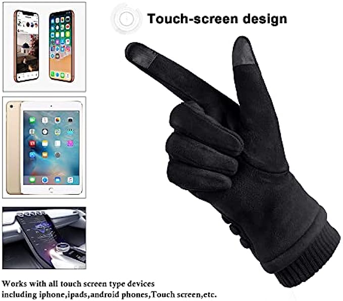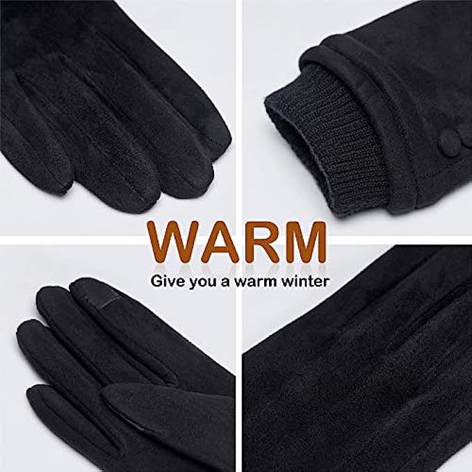 • 1.MATERIAL:Suede,Plush lining texture.This Soft full thick lining and classic design gloves will keeps your hands warm in the cold weather.